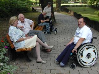 Nachdem Frank's Futtereimer voll und zum Auto transportiert waren, wurde noch ein kleines Pläuschchen auf einer Stadtparkbank gehalten.